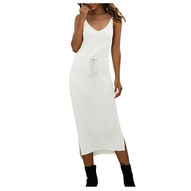 Homely White Dress Women S Casual Loose Long Dress Sleeveless Split Belt A Line Tank Maxi Dresses Walmart Ca